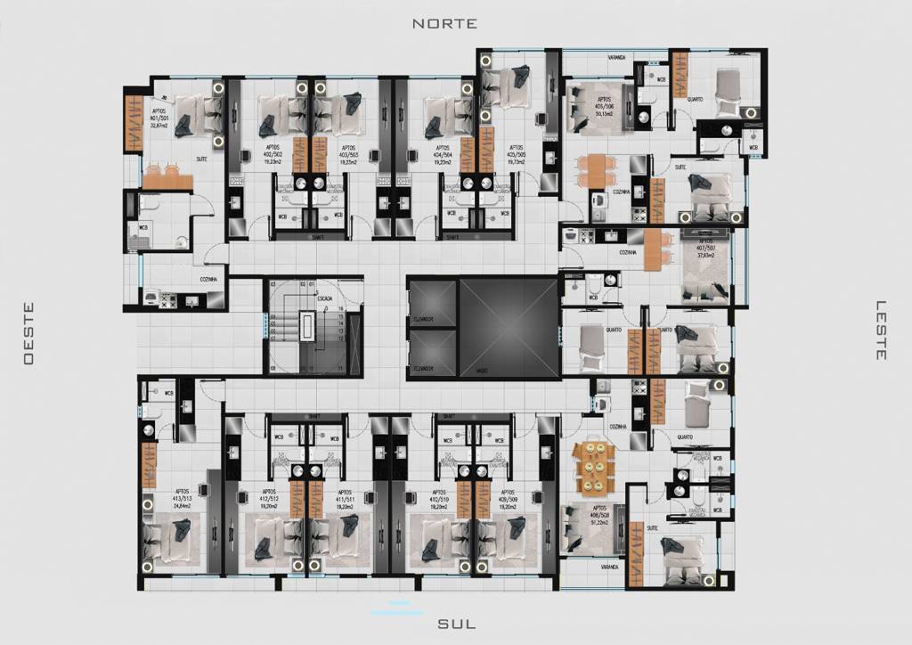 Infraestrutura completa: elevador, coworking, restaurante, academia, piscina, lavanderia e espaço gourmet – tudo pensado para conforto e rentabilidade.